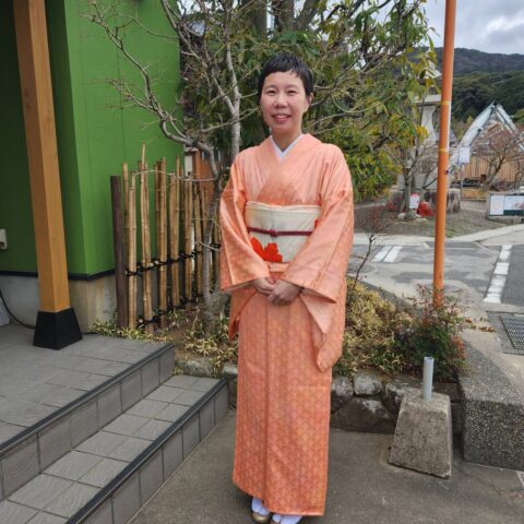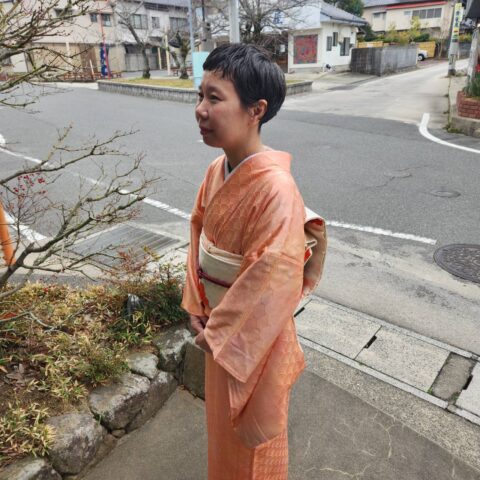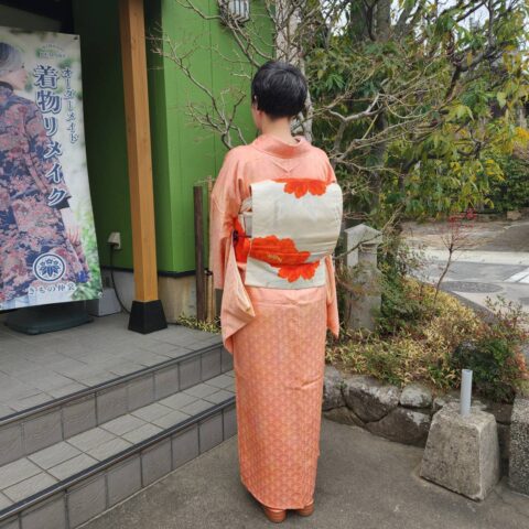 着物と帯、小物の帯揚と帯〆、すべてお母様のものです。