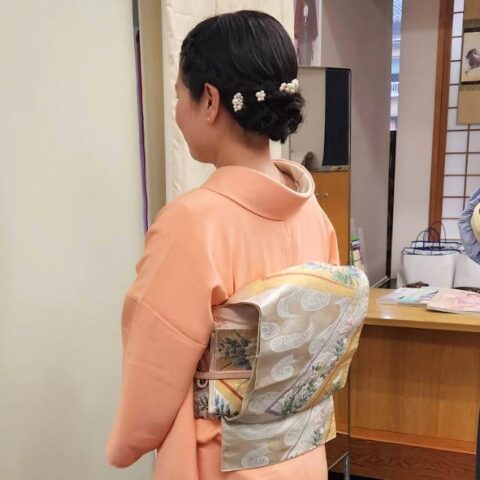 色無地の着付けをさせていただきました。