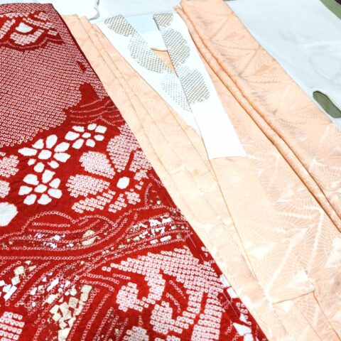 娘さんよりもお孫さんのほうが背が高く、肩ゆきも長いので、振袖、長襦袢ともに、仕立て直し(縫い替え)をさせていただきました。